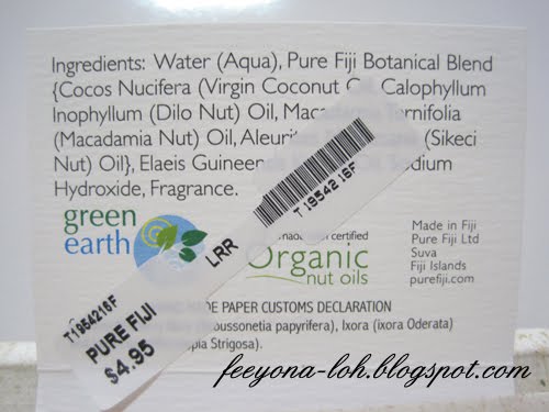Today I received a gift from my CEO, Kate. It’s a gift from Fiji! My boss went for a Christmas holiday and she returned to office yesterday. I dropped by her office to say hie and she surprised me today with this. “Darling, which would you like?”…she asked me this morning with both her palm extended in front of me. On both of her palm she placed a green and a pink flowery box. I thought it’s a box with something in it. Coincidently my other colleague walked by and she was stopped by my boss as well. As she asked me first, I got to pick the one I want. Of course I picked the pink one! Everyone knew I love pink =). My boss said that this soap is made from coconut oil and our skin will be very soft and hydrated after using. It’s for face and body.