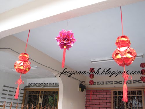 Previously I made 2 types of tanglong from red packets. Read here and here. Then I made another 2 types but due to time limitation, I didn’t take picture of the process. Here’s the tanglong decoration at my house.