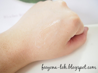 Now, this is how the cream-gel looks like on the back of my hand before spreading it.