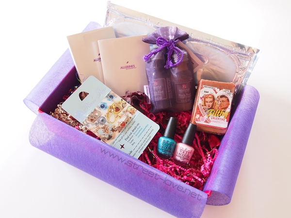 When I pull out the drawer, I was amazed by the wonderful scent and purple paper wrapping. As it’s Valentine month, there’s generous potpourri on the nesting inside. So far Vanity Trove has the best presentation of beauty box.