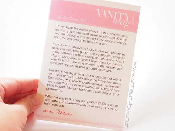 Despite the small mishaps, I’m satisfied with my first subscription of beauty box from Vanity Trove. I’ve even subscribed for March trove. Hope there’s no missing item this time.